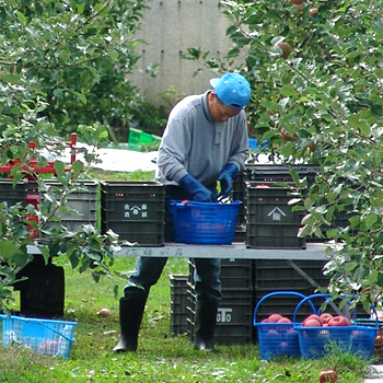 商品としては困るのですが、その『つる割れりんご』がまた特別に美味しいのです。 知る人ぞ知る通の味で、地元の人はこの『つる割れりんご』を好んで買う人も多いです。 |